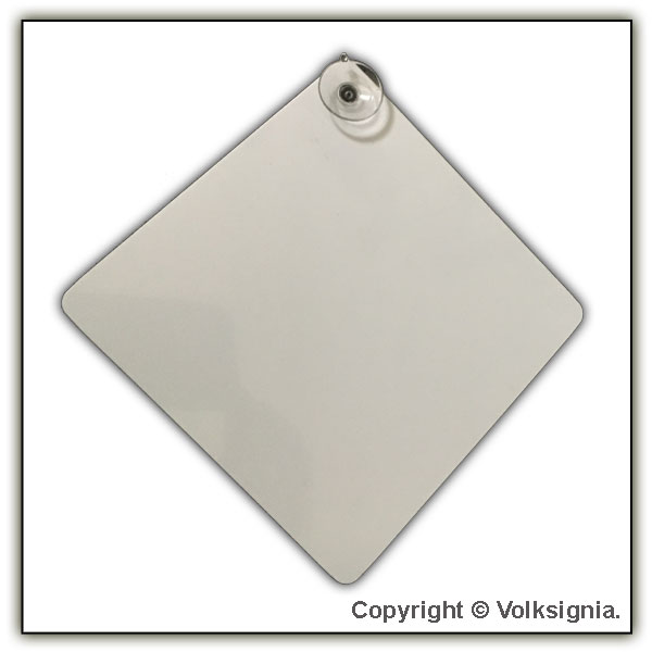 A blank interior mounting vehicle window suction cup sign measuring 165 x 165mm point to point & 120mm along the straight edge.